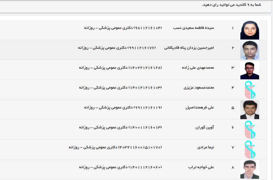 اصلاحیه اسامی داوطلبان تایید صلاحیت شده نهایی انتخابات شورای صنفی دانشجویان دانشکده