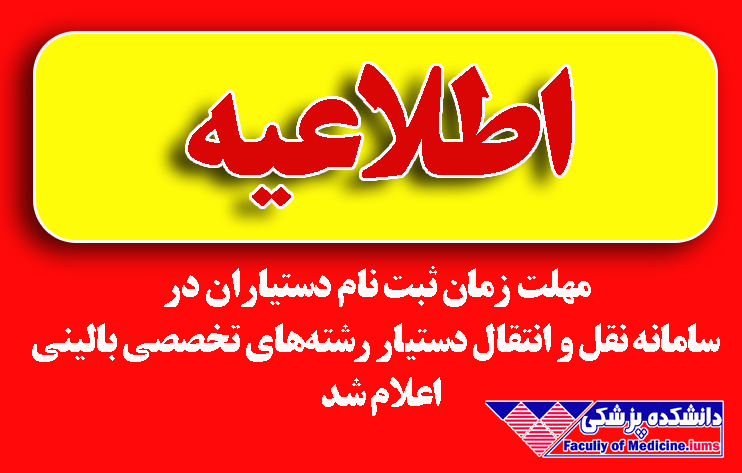 به اطلاع میرساند به دلیل شرایط خاص کشور و تسهیل امور اجرایی دستیاران محترم، مهلت زمان ثبت نام دستیاران در سامانه نقل و انتقال دستیار رشتههای تخصصی بالینی از تاریخ 01/05/1404 لغایت 31/05/1404 میباشد و مهلت بررسی دانشگاهها از تاریخ 01/06/1404 لغایت 21/06/1404 میباشد و اعلام نتایج نهایی تاریخ 31/06/1404 خواهد بود.